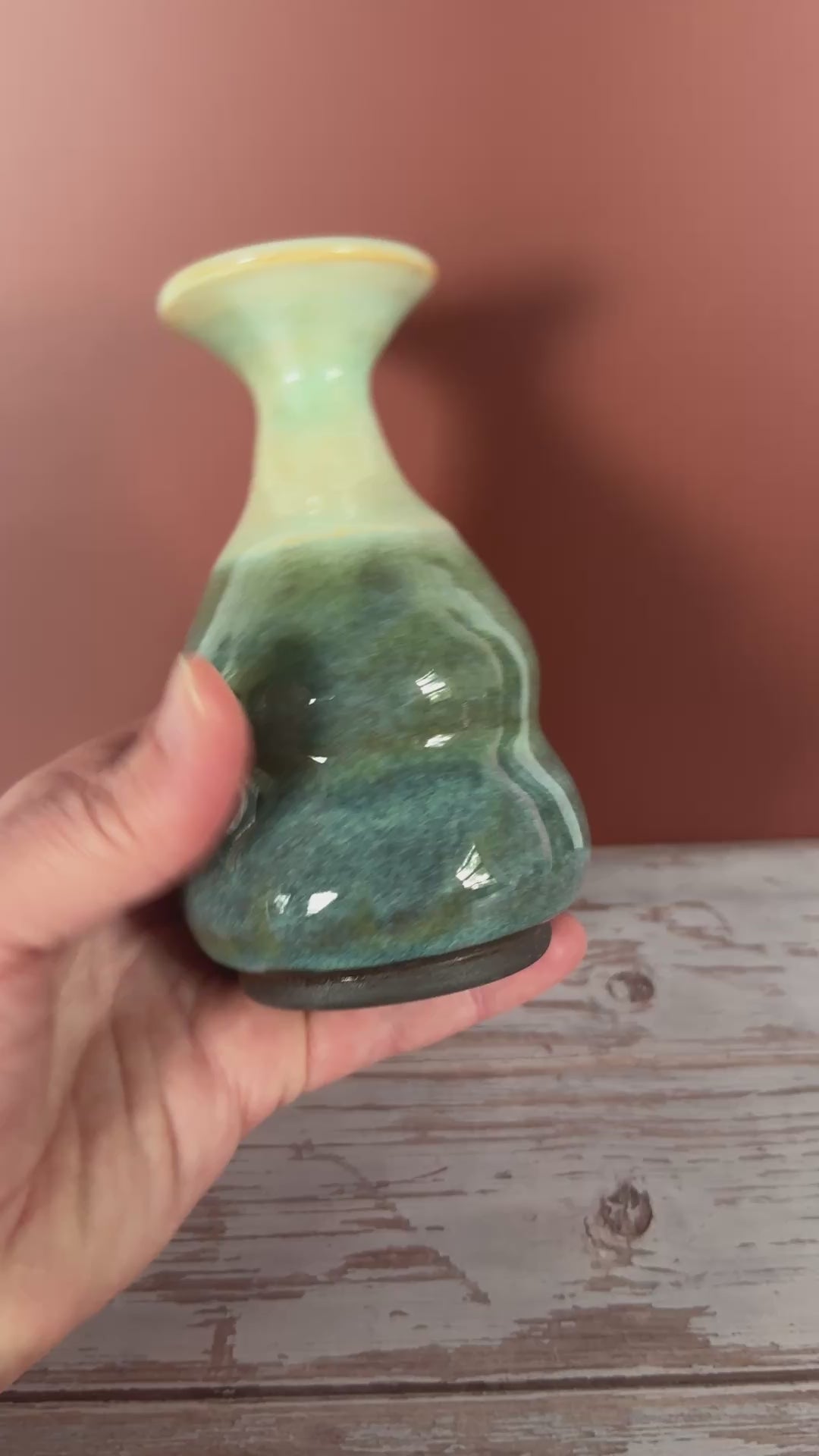 This 5" dark stoneware Colorpop bud vase moves from warm harvest gold into jade green. A simple piece that works with dried flowers, lavender, or on its own. :)