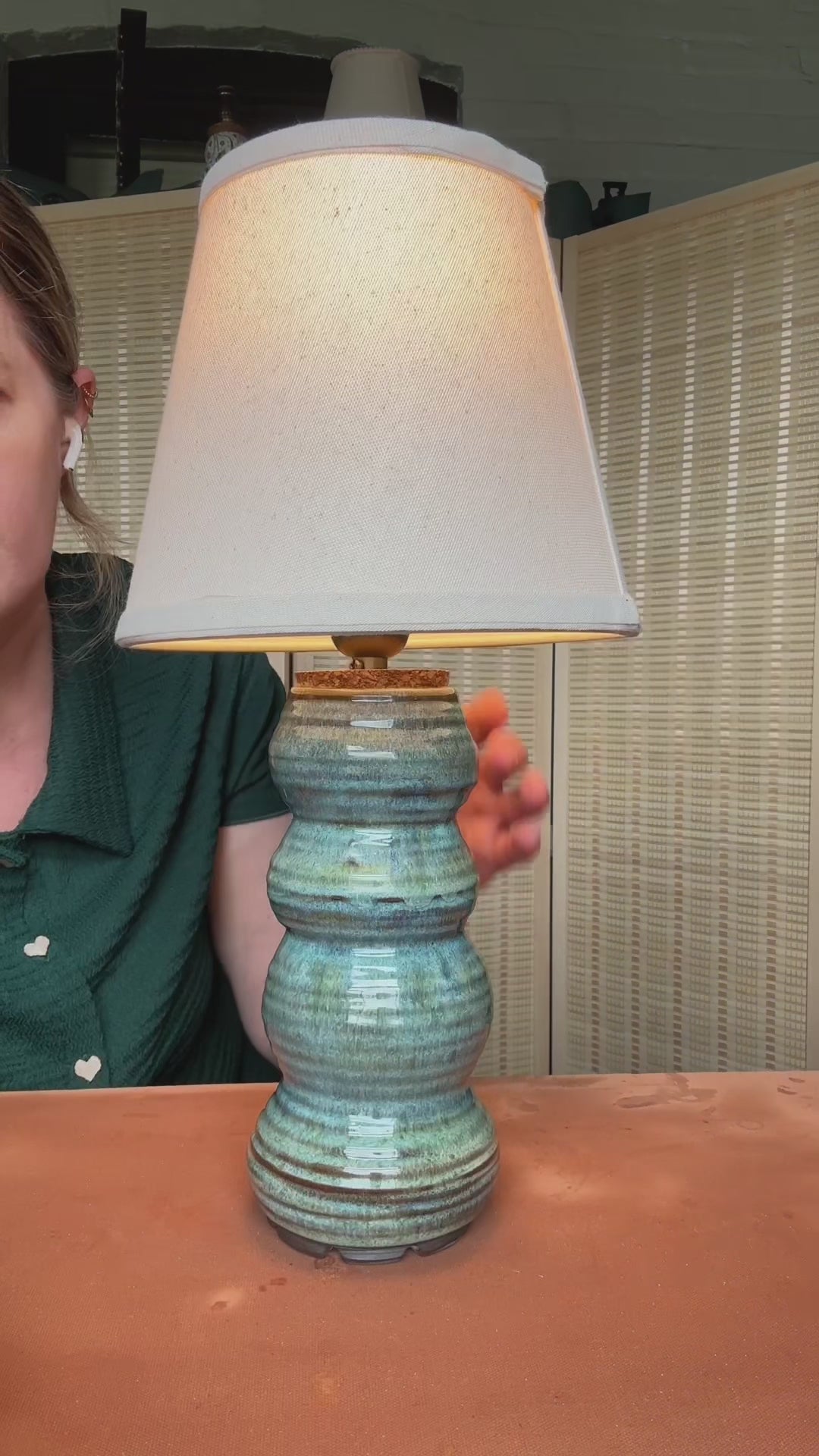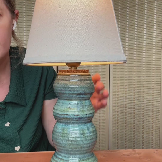 Jade green lamp on chocolate stoneware, this ceramic lamp features my favorite glaze!