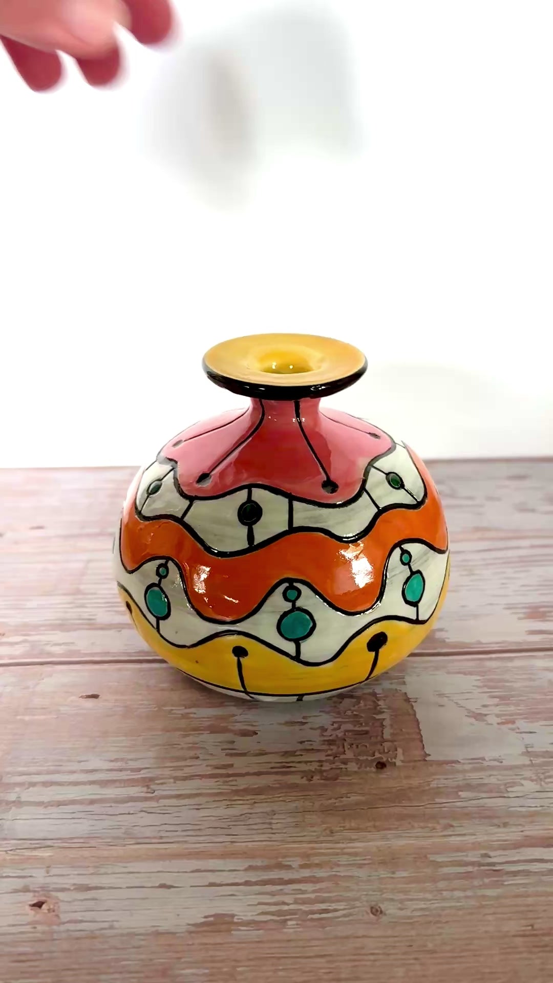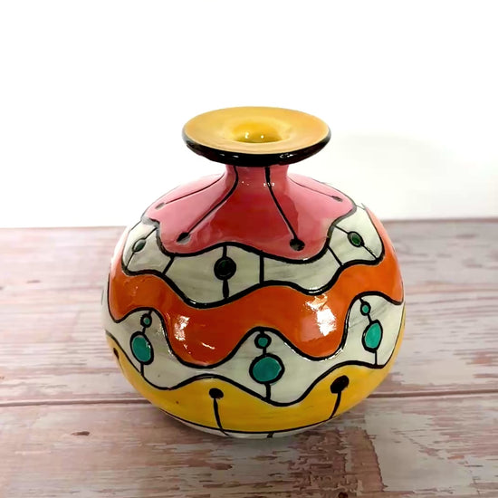 This 5 1/2" dark stoneware round moonjar with a flared rim is one of my all-time favorite things I've ever made. Thrown on the pottery wheel, then layered with white slip, painted with underglazes, and carved back, it's the perfect little pop of color for any space that needs a little brightness.